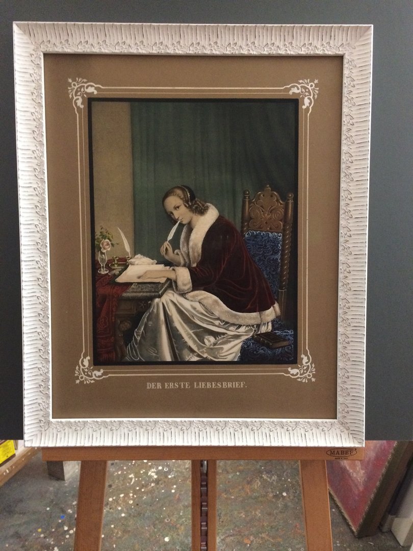 Schöner alter, handkolorierter Druck gerahmt mit meinem neuen Vintage Rahmenprofil