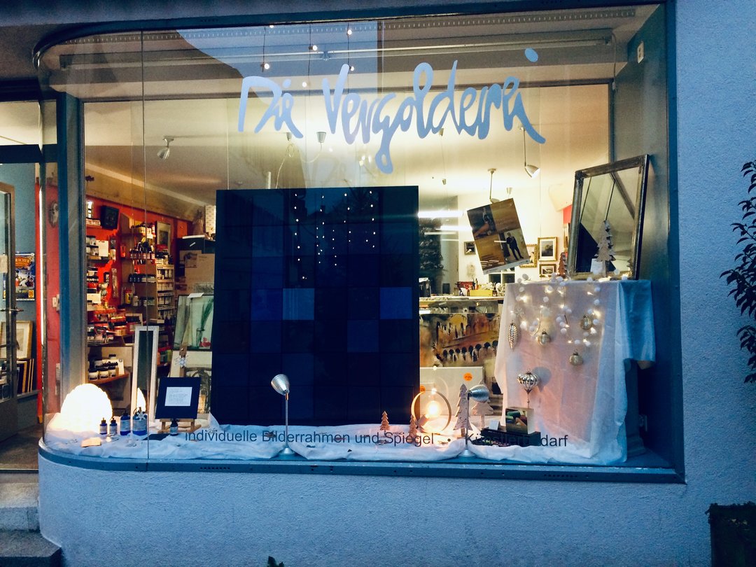 Im Schaufenster tolle Ideen für Weihnachtsgeschenke und ein schönes Bild von Victor Hottinger