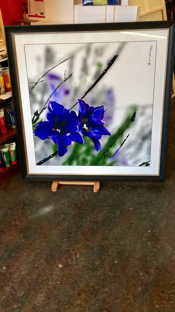 Gerahmt mit einer schwarzen Hohlkehle mit silber Rand