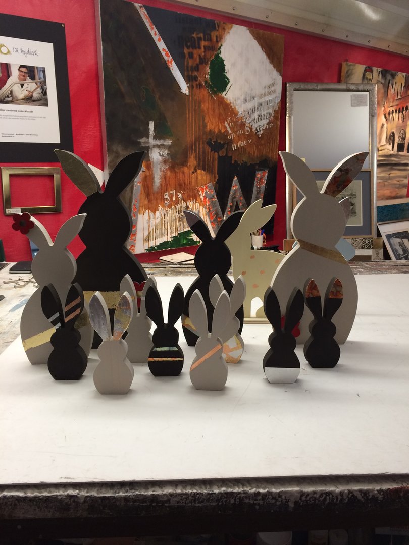 Meine fleissige Praktikantin hat diese schönen Hasen bemalt und vergoldet
