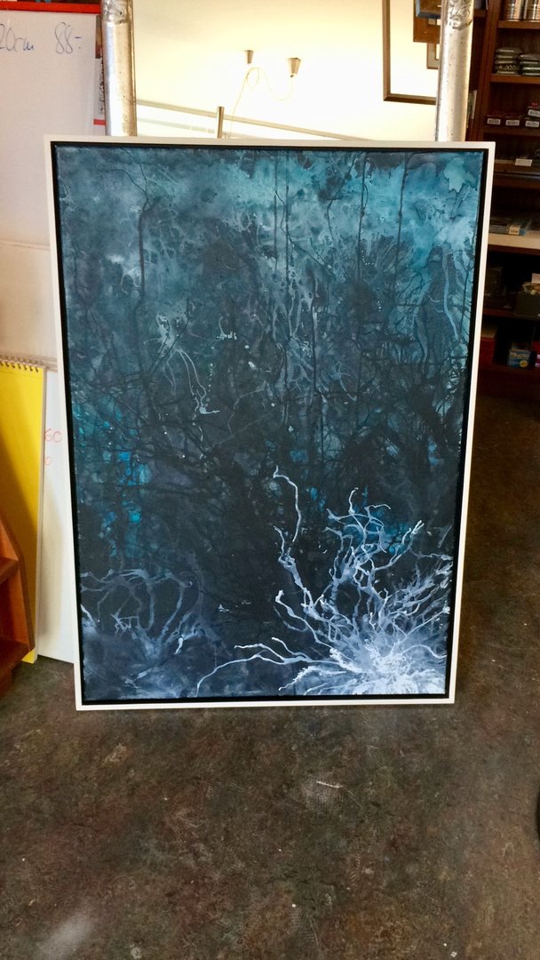 Heute habe ich ein Acrylbild von Stefan Rüegg (stefanrueegg.ch) gerahmt, mit Schattenfugerahmen, innen dunkel, aussen Weiss gefasst